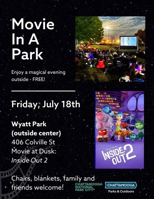 Chattanooga Parks & Outdoors is hosting a FREE Movie Night in our neighborhood this Friday! But don’t let the selected feature (Inside Out 2) deter you from joining if you’re not into animated films. Because while Movie in a Park offers free entertainment for the kids, it offers something even bigger for all of us: community.